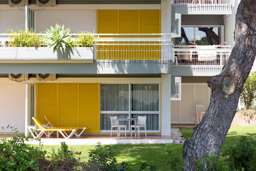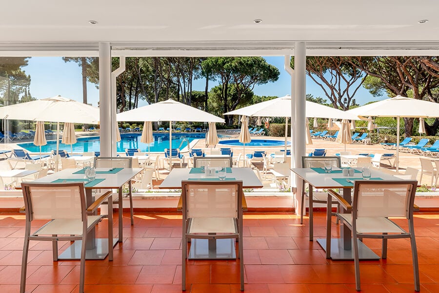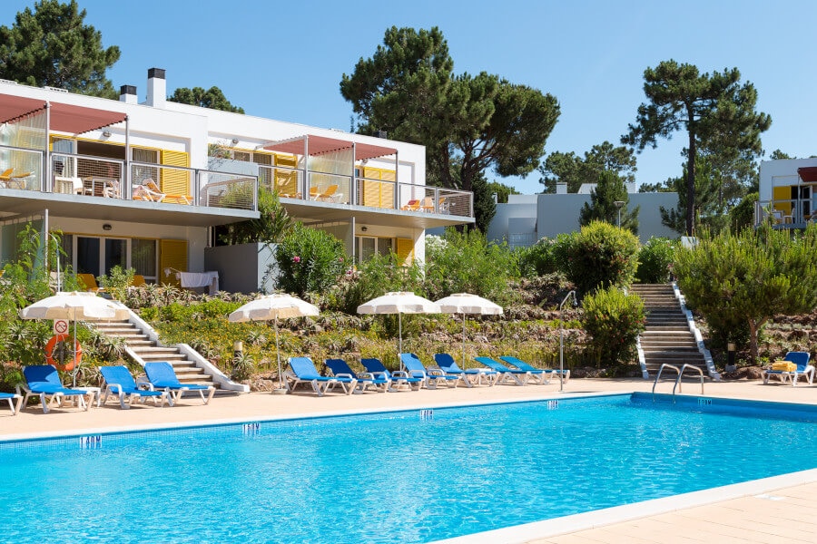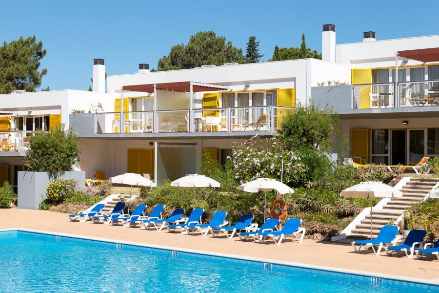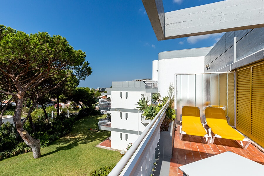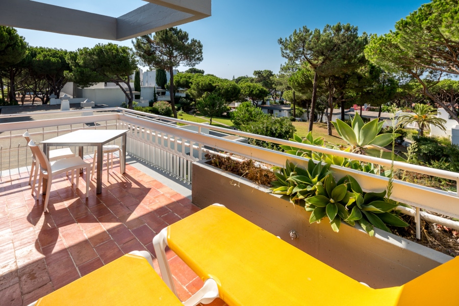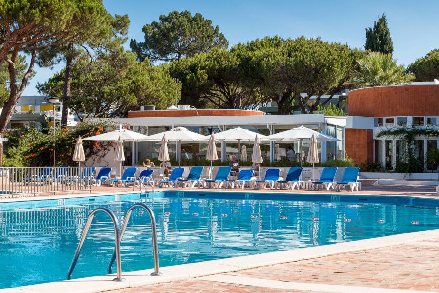 Pinhal da Marina apartments are set in a private condominium. Ideally located at a 15-minute walk distance from Vilamoura's marina and the beach, our 128 apartments, harmoniously arranged and surrounded by gardens are the perfect place for your holidays in the Algarve. Pinhal da Marina apartments are equipped with fitted kitchens that have all the necessary facilities for your everyday needs. We have a wide resort accommodation range from studios to 3 bedroom flats for the whole family.Wi fi free of charge in all apartaments and common areas.|Reception, restaurant for the whole family, two swimming pools for adults and children, playground, wide areas of leisure, table tennis, playing field, Petanque court and multiplaying field. Tennis lessons, bicycles rental and babysitting services are also available with an extra cost.