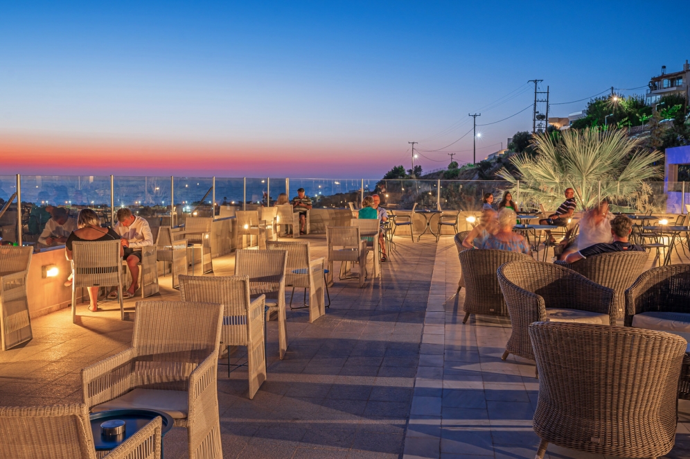 I loungebaren, som också har en takterrass med fantastisk utsikt, kan du njuta av solnedgången med drinkar.