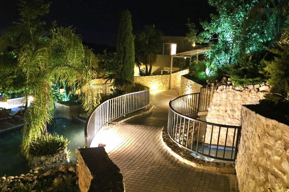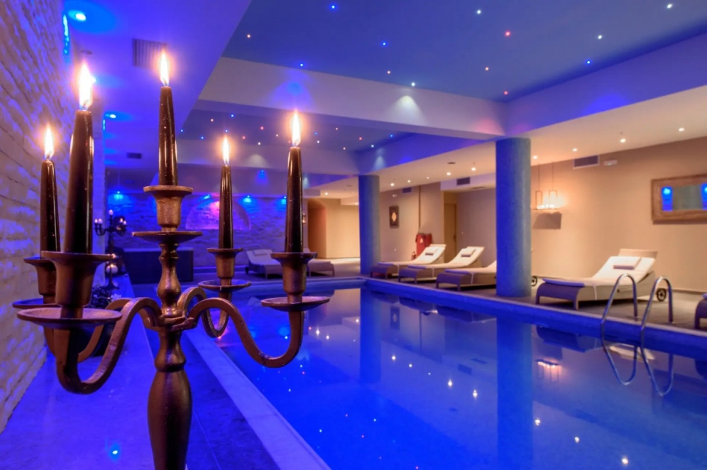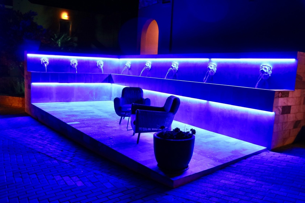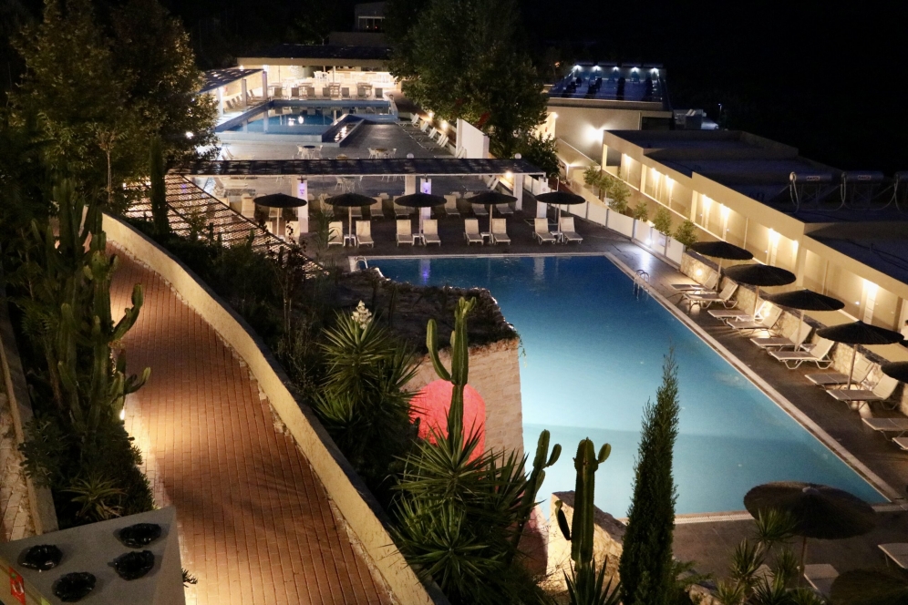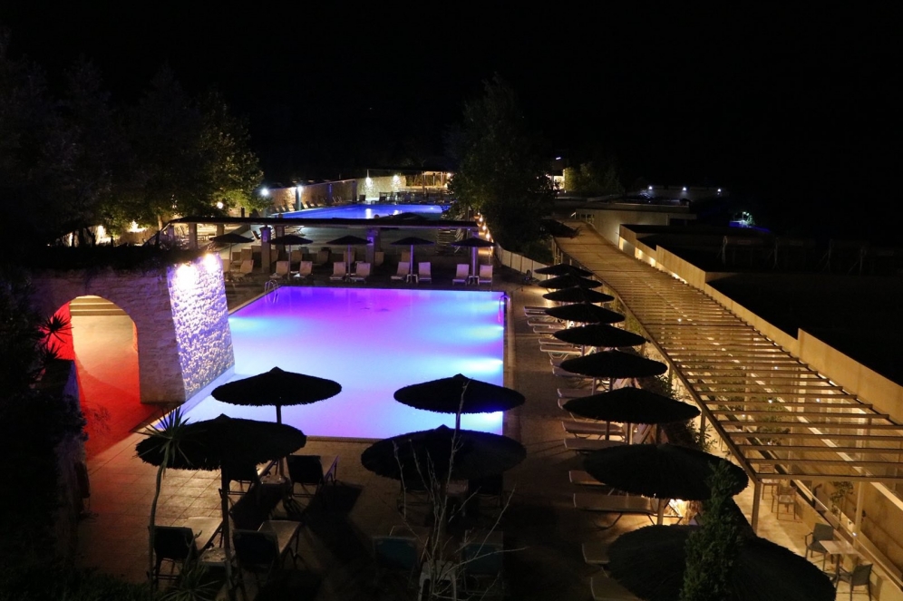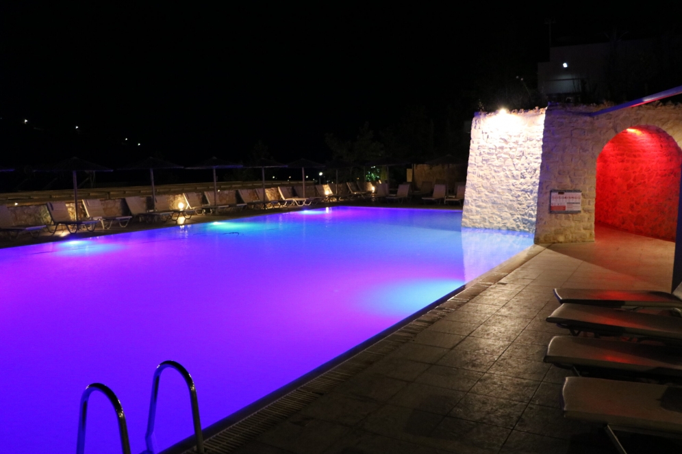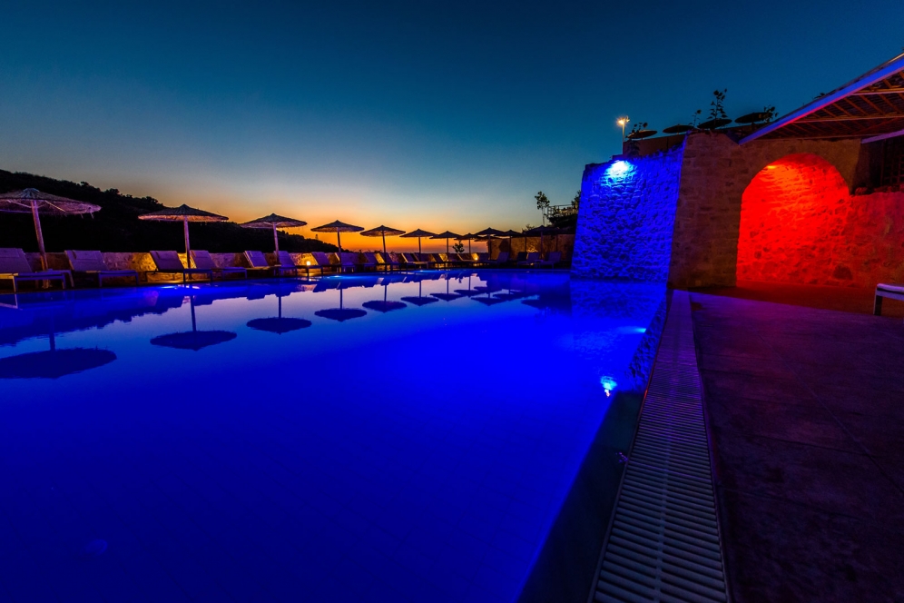 Den stora sötvattenspoolen är upphöjd, vilket ger gästerna intrycket av att de har havet vid sin bredd. Klorprodukter används inte, eftersom vi har installerat en toppmodern elektroelueringssaltmekanism som skapar ett steriliseringsmedel från naturligt salt, vilket håller vattnet färskt och bakteriefritt.