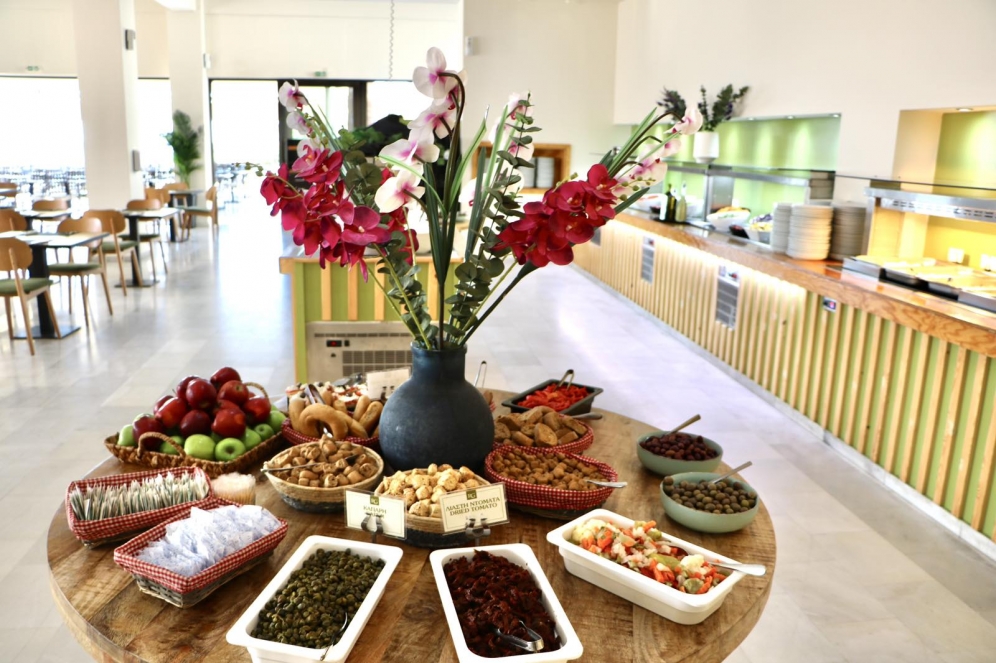 Rimondi Grand Resorts restaurang, Dimitra Rstaurant, tillagar måltider med lokala produkter som introducerar våra gäster till utsökt och hälsosam kretensisk mat. Måltiderna tillagas med färska produkter från närliggande byar. I restaurangen kan du också njuta av utmärkta lokala viner.